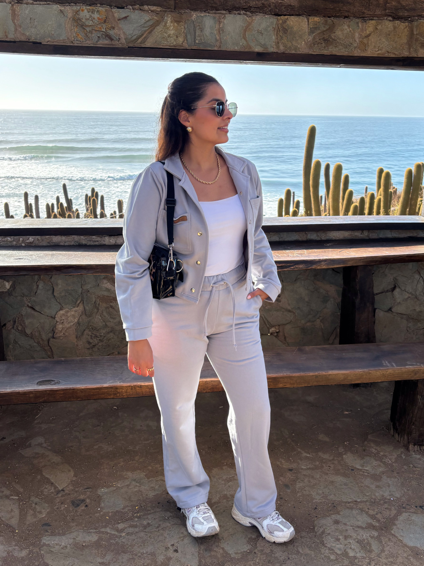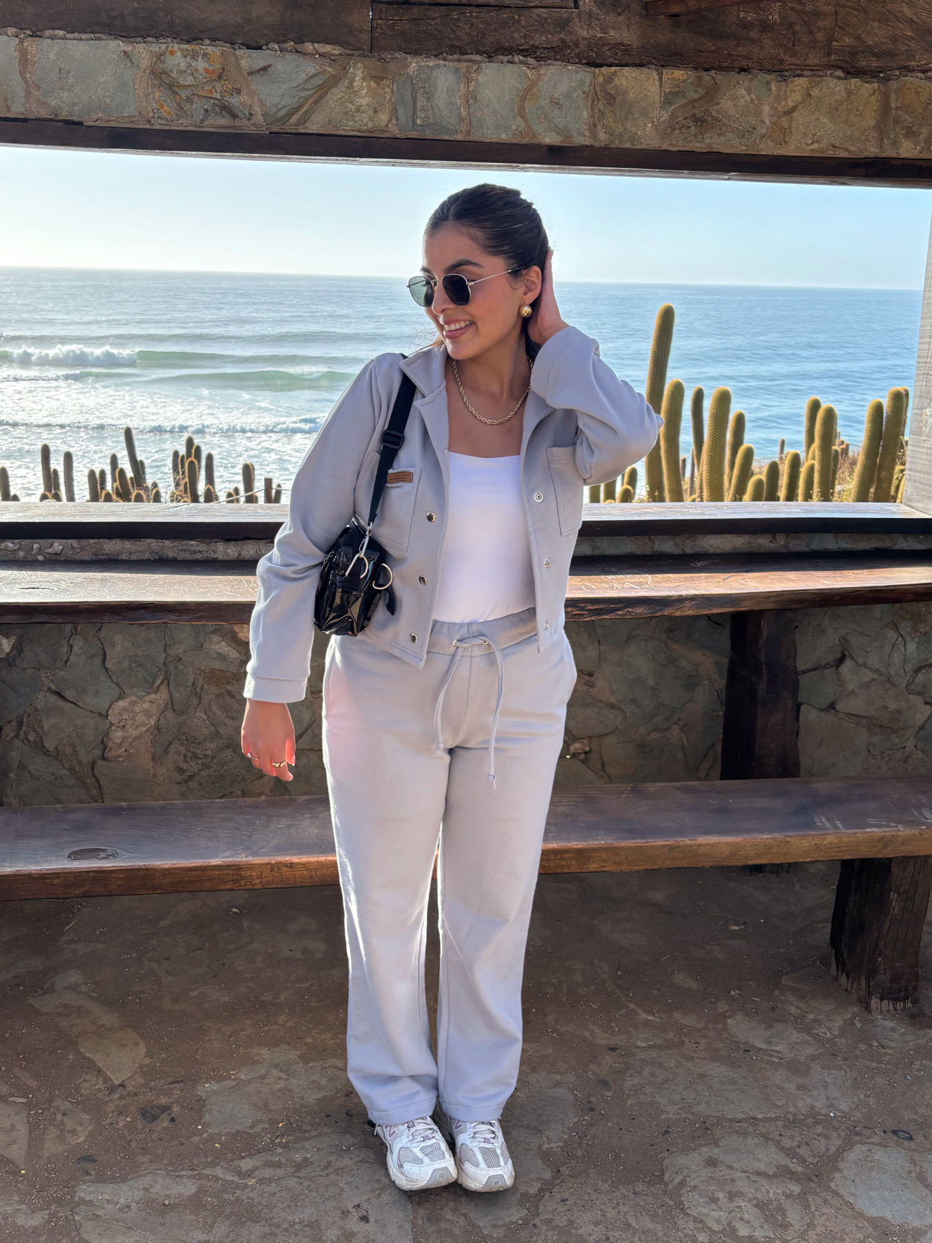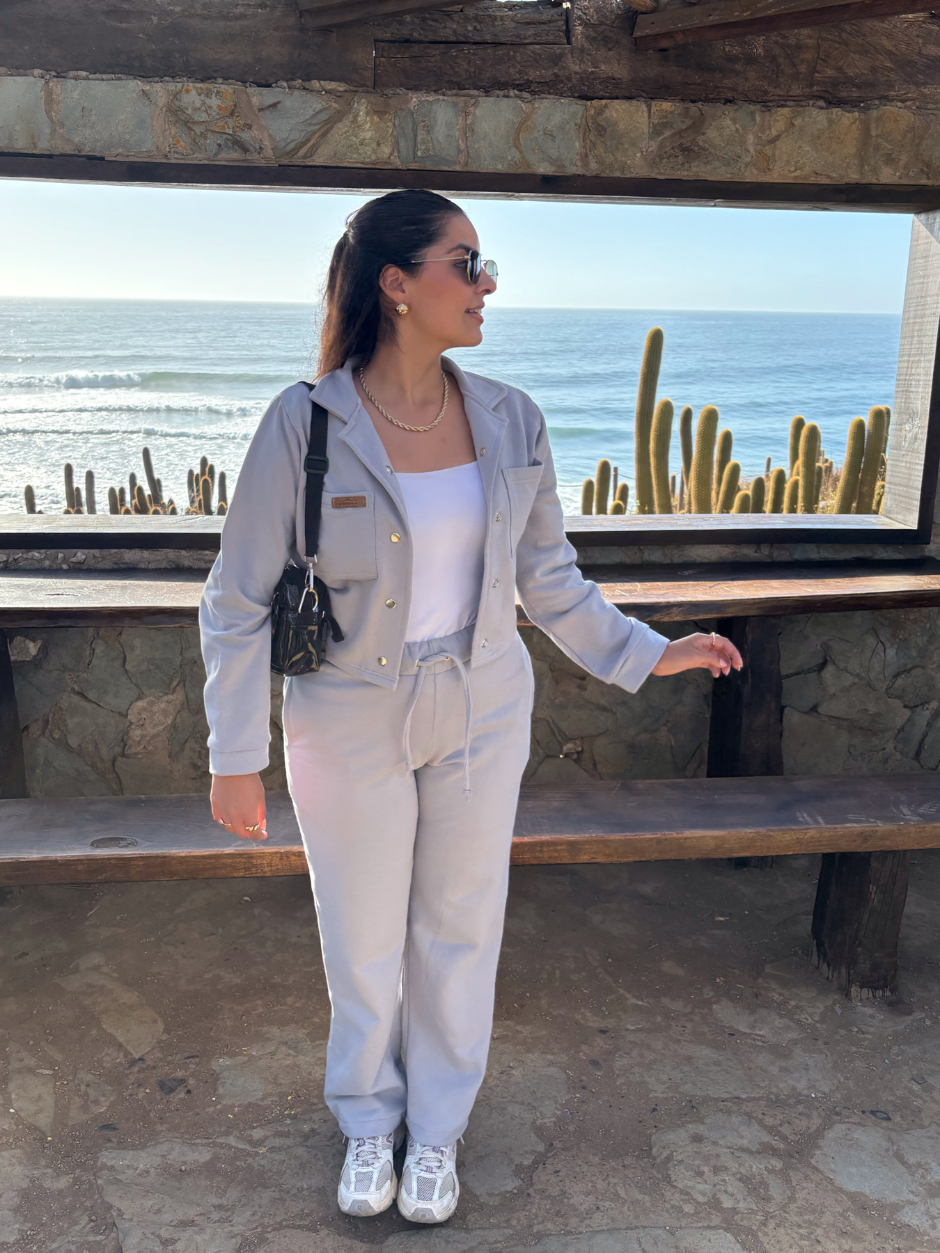 El Conjunto son 2 productos: un pantalón estilo palazzo con pretina y elástico, además de tira para un mejor ajuste. Y un polerón estilo chaqueta con broches y dos bolsillos.