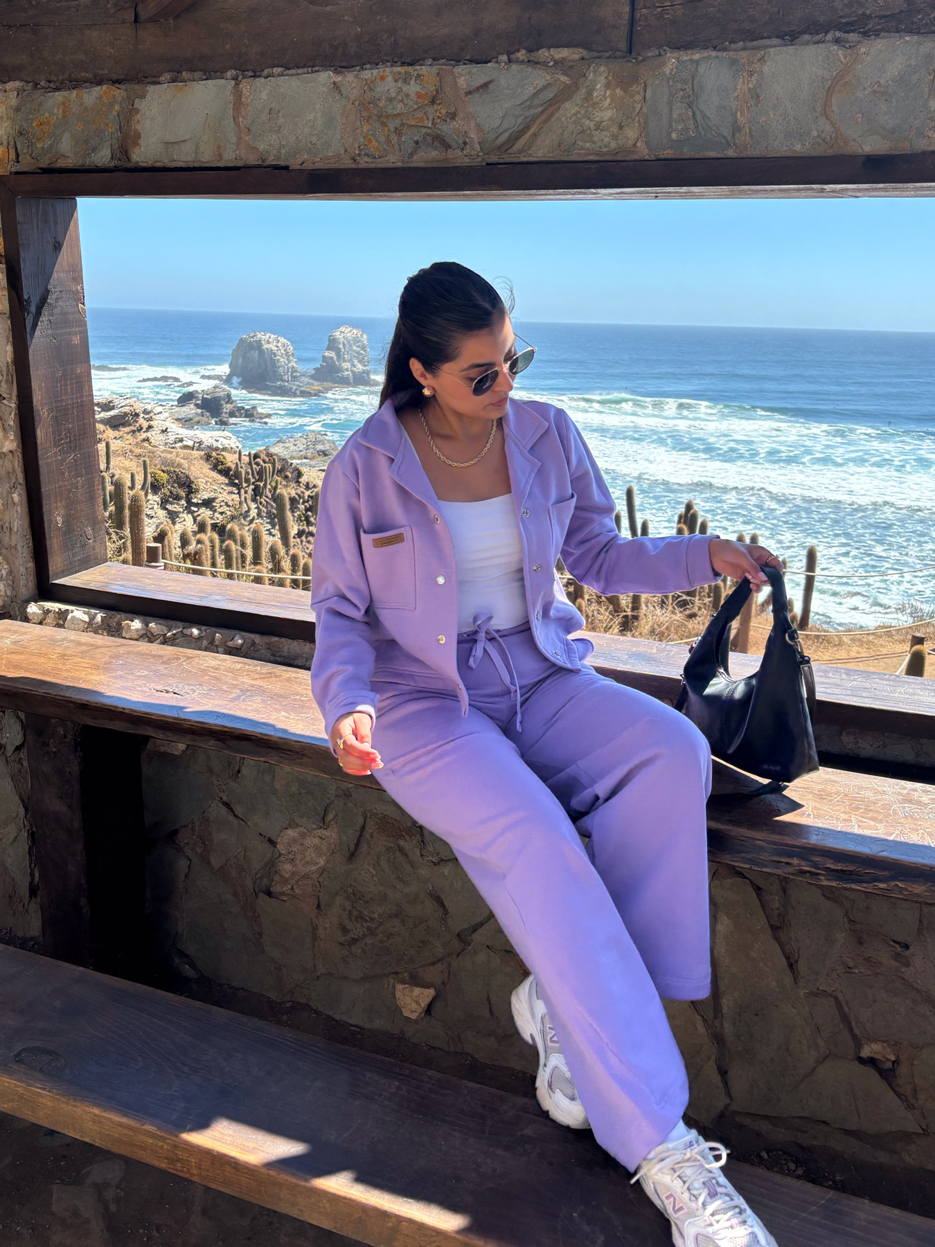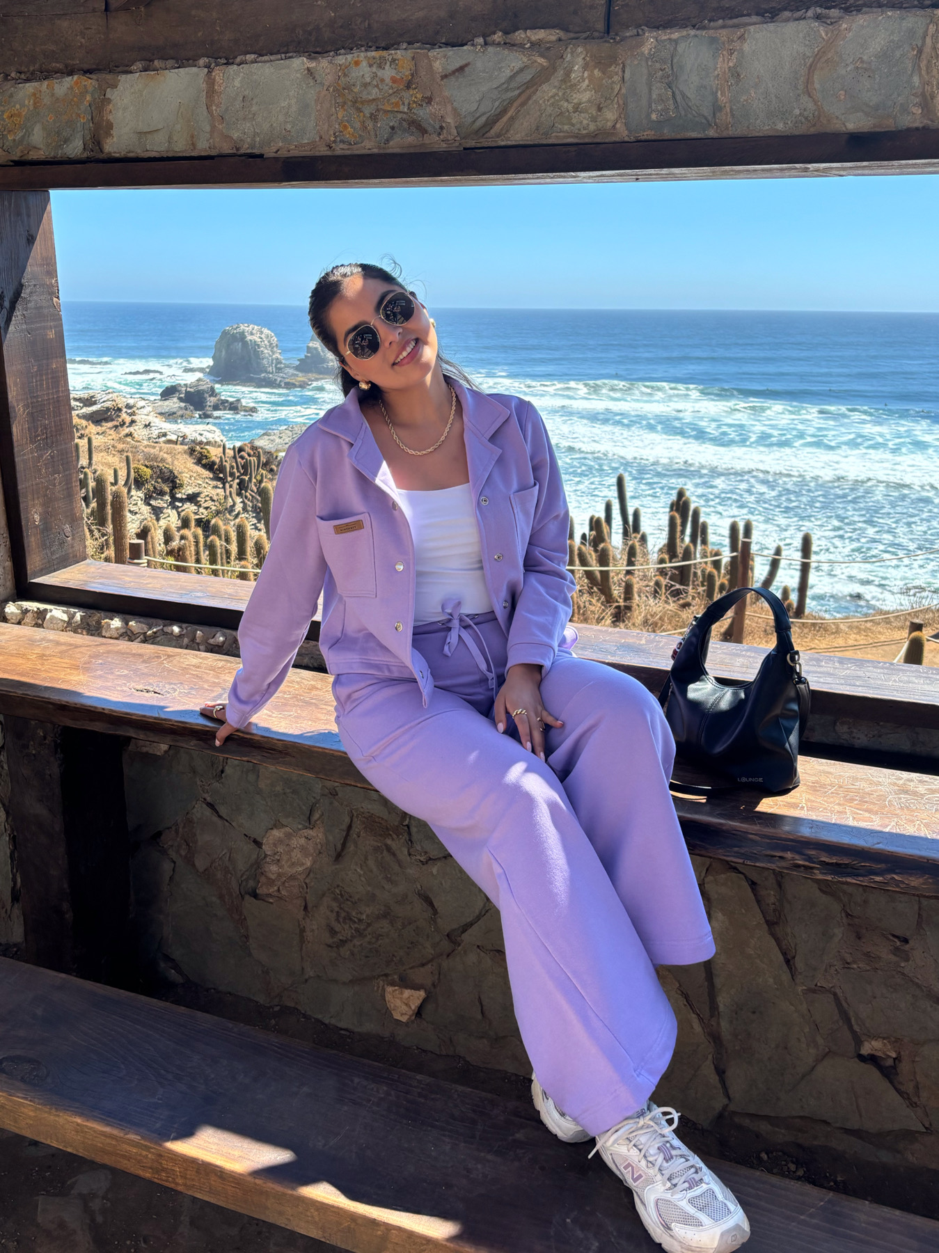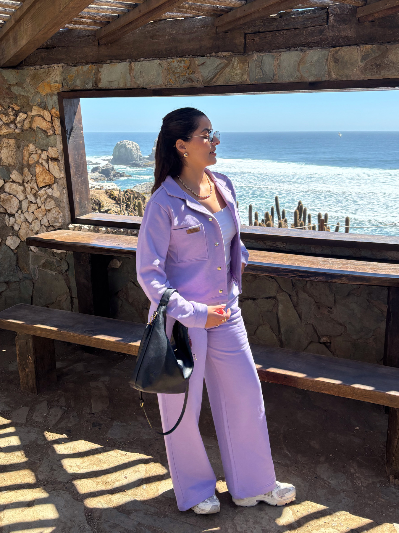 El Conjunto son 2 productos: un pantalón estilo palazzo con pretina y elástico, además de tira para un mejor ajuste. Y un polerón estilo chaqueta con broches y dos bolsillos.