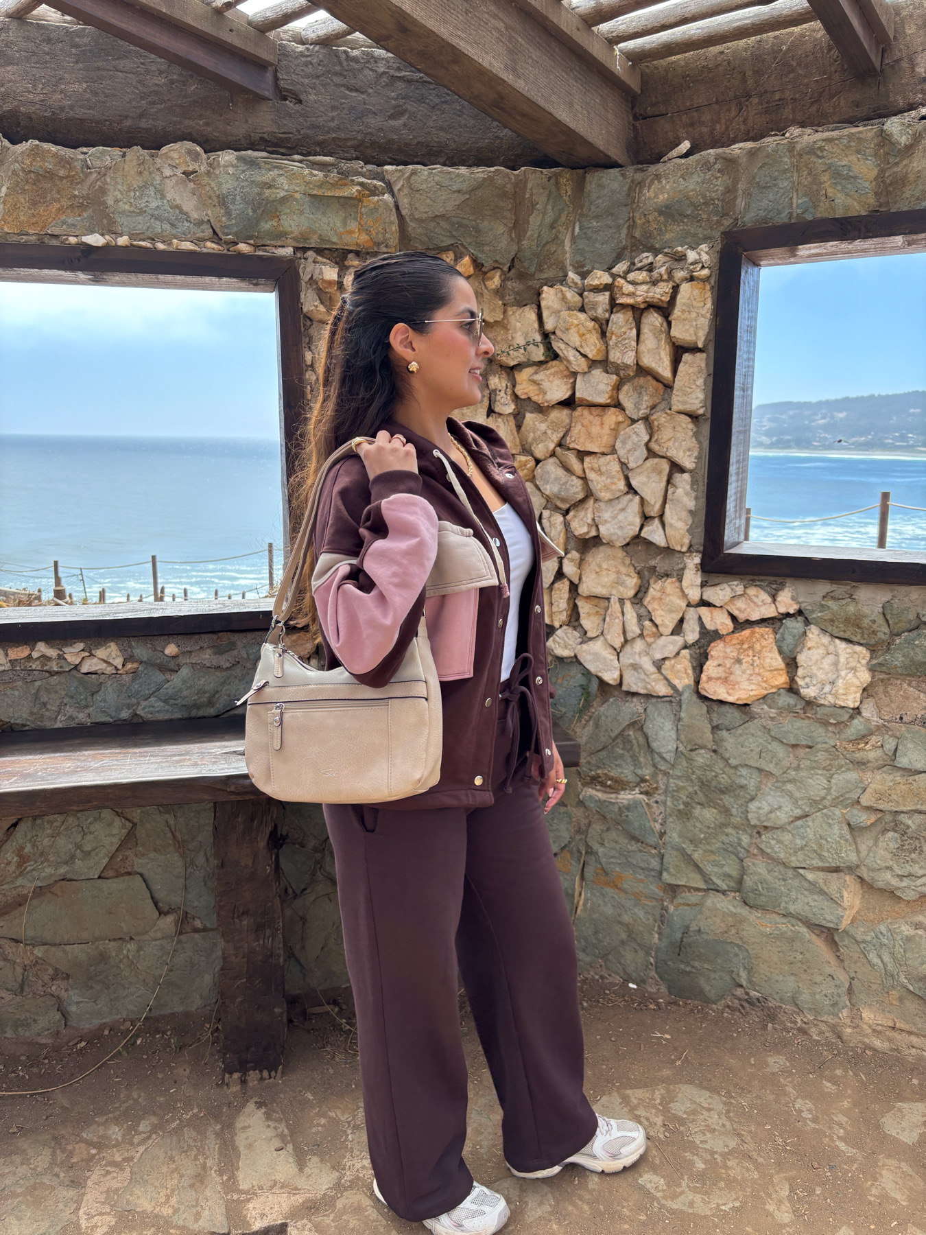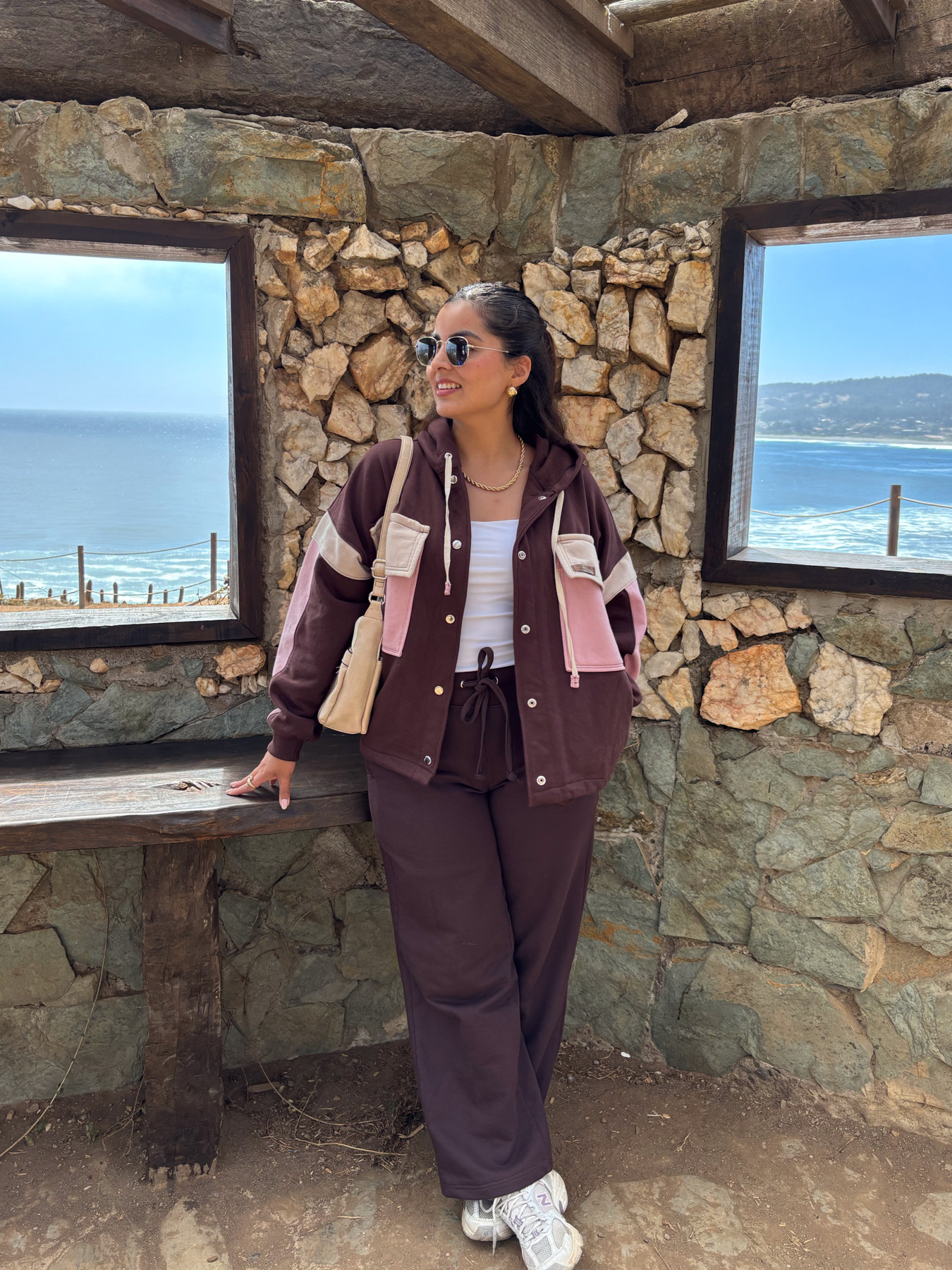 Conjunto Monaco: Polerón + palazzo. Confeccionado en franela algodón con carda (café,  beige y rosado)