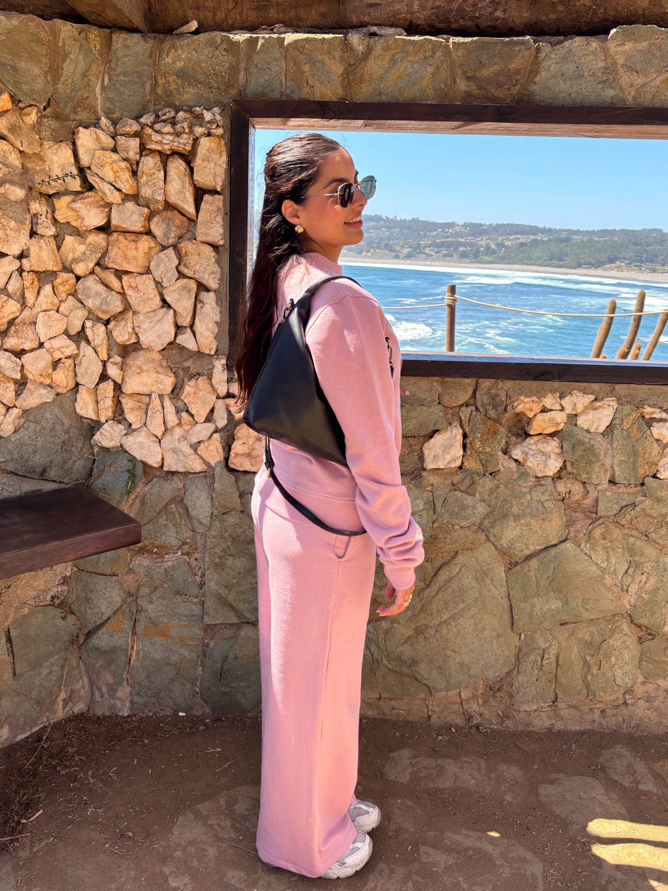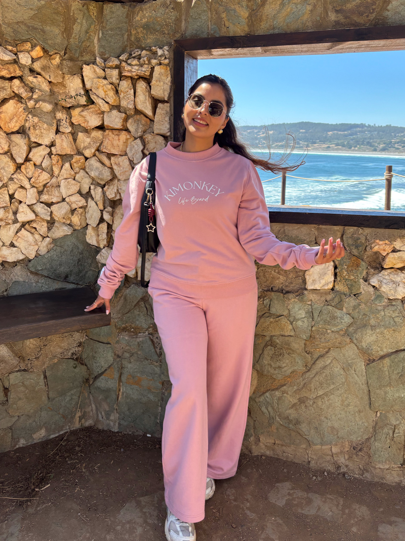 Es importante considerar que las medidas son referenciales y pueden tener pequeñas variaciones producto de la confección y corte manual. La modelo de las fotos tiene de busto una medida de 95 cm y de cadera 105 cm, y esta usando la talla L en el polerón y la talla L en el pantalón palazzo.